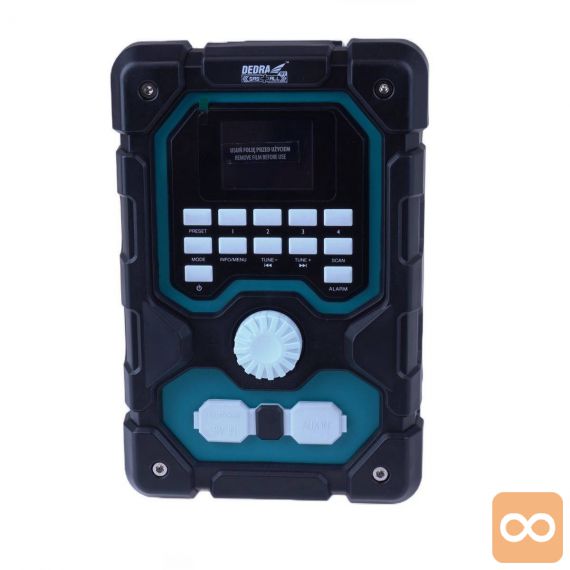 Delavnica ali gradbena okolja pogosto zahtevajo predvajanje glasbe pri visoki glasnosti. Da bi bilo to mogoče, mora imeti radio močne zvočnike. In to velja za gradbeni radio DEDRA DED7006BT DAB+ . Dva zvočnika z močjo 8 W, zaprta v trpežnem ohišju, ustvarjata odlično kakovost zvoka tudi pri visoki glasnosti. Pozabite na šibke nizke tone ali nenavadne zvoke, ki prihajajo iz zvočnikov, ko poslušate glasno glasbo. Ohišje, odporno na poškodbe, ima stopnjo zaščite pred prahom in brizganjem vode IP54, ki zagotavlja zaščito pred nenamernimi poškodbami radia med delovanjem.