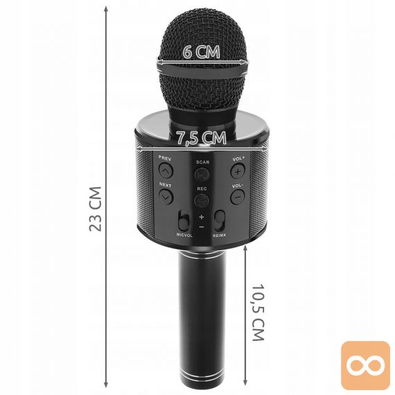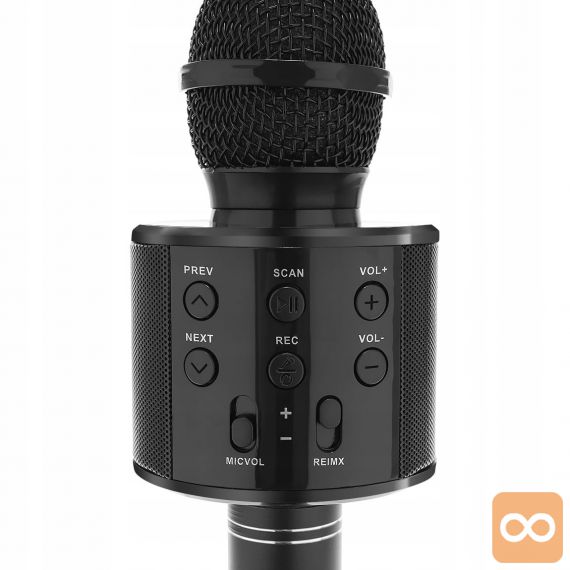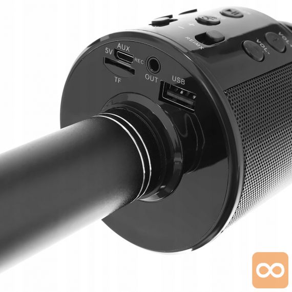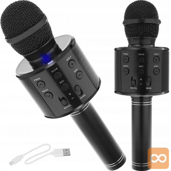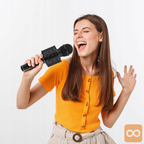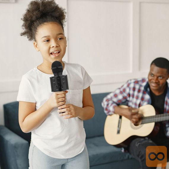 Mikrofon za karaoke je zelo enostaven za uporabo – preprosto ga povežite z zunanjo napravo, kot so iPod, iPhone in MP3 predvajalniki. Ko je povezana z drugo napravo, predvaja glasbo, lahko jo obravnavate kot glasbo v ozadju.