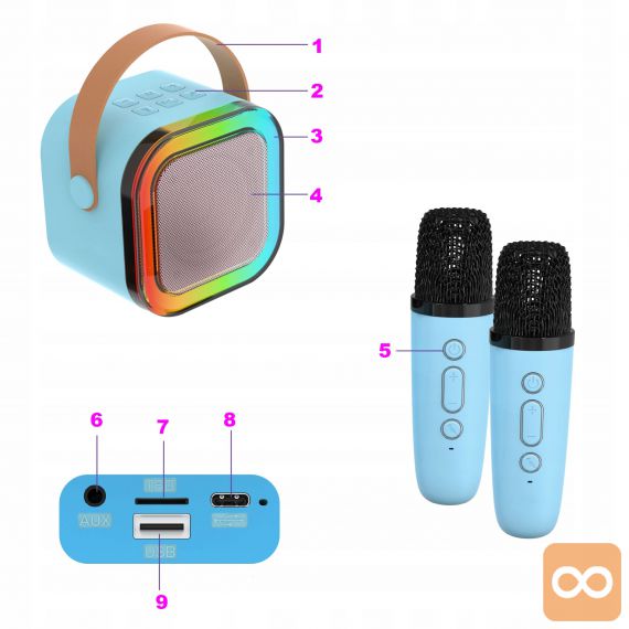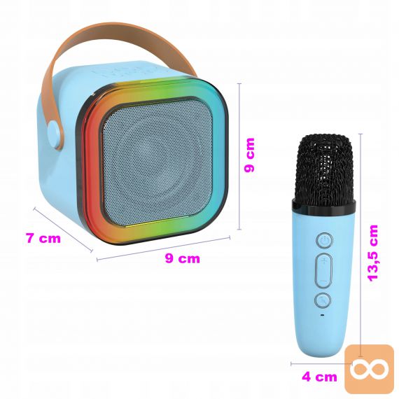 Aku. karaoke zvočnik Bluetooth 5.3 2x mikrofon LED RGB moder