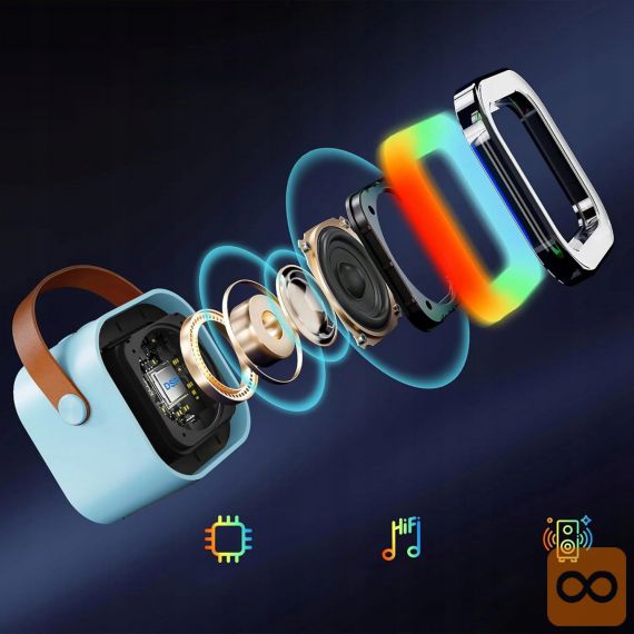 Prenosni karaoke set – popolna zabava za vsako priložnost! Opremljen z brezžičnim Bluetooth zvočnikom z dinamično RGB osvetlitvijo in dvema mikrofonoma, zagotavlja odlično kakovost zvoka in popolno svobodo petja. Podpira povezavo USB, AUX in SD kartico, kar vam omogoča predvajanje vaših najljubših pesmi iz različnih virov. Zaradi kompaktne zasnove in vgrajene baterije je popoln za zabave, družinska srečanja in igre na prostem. Enostaven za uporabo, zagotavlja odlično zabavo za vsakogar!