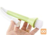 Zgornji del ščetke je izdelan iz silikona , zaradi česar se prilega večini vrst baterij. Zahvaljujoč tej konstrukciji ga lahko poljubno upognemo, da lahko odstranimo umazanijo tudi s težko dostopnih mest.