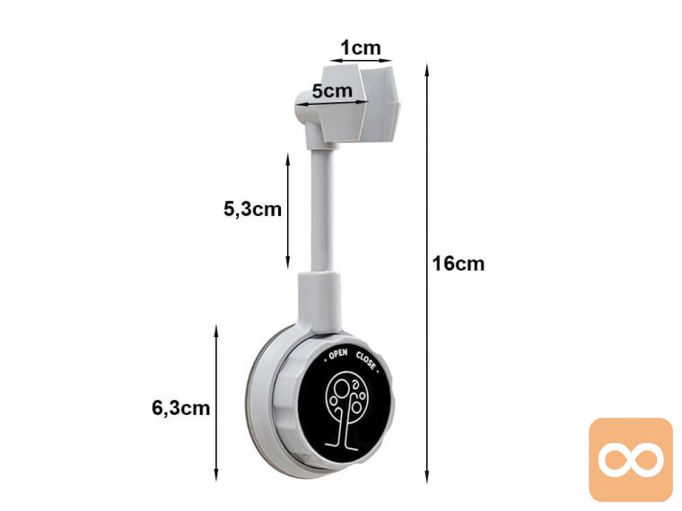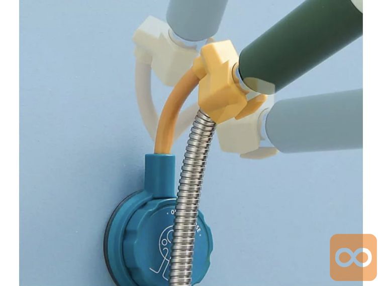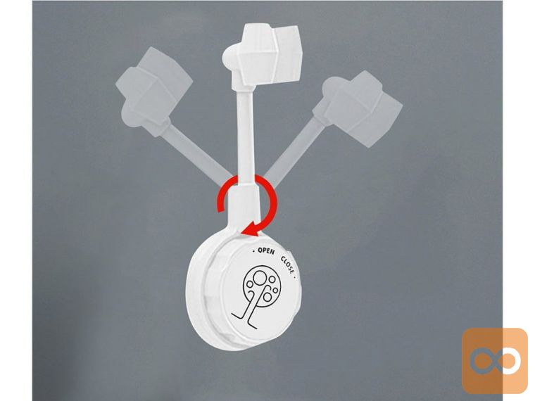 Za pritrditev ročaja ga morate močno pritisniti na gladko površino, nato pa gumb obrniti do konca proti napisu CLOSE. Držalo za prho je mogoče poljubno nastaviti, tako da slušalko nastavite v poljuben položaj.