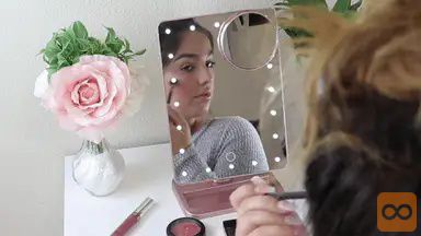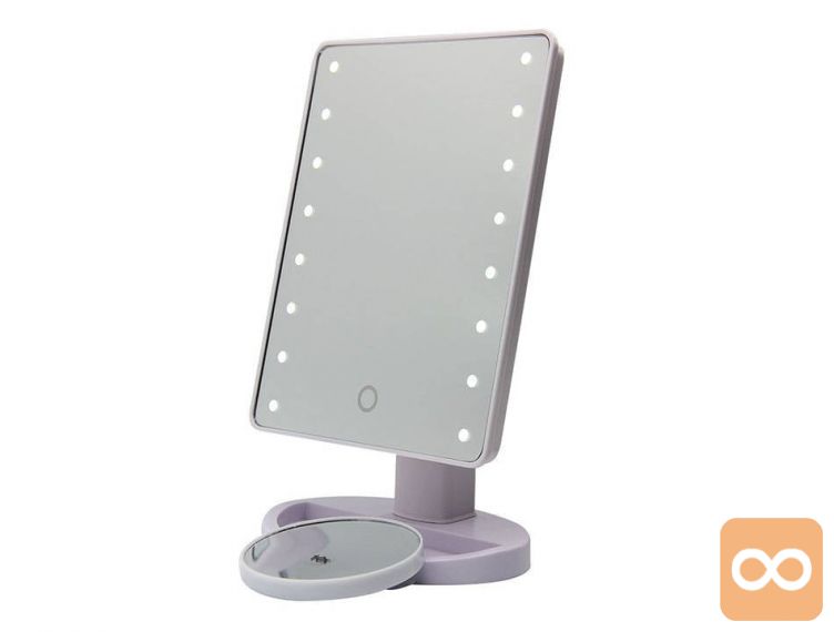Osvetljeno ogledalo je zelo praktičen in nadvse uporaben pripomoček za lepotne tretmaje, ličenje ali nastavljanje kontaktnih leč. Strani imajo vgrajeno LED osvetlitev ozadja, ki jo napajajo baterije, nameščene v notranjosti, ki jih upravlja stikalo na dotik, vgrajeno v telo ogledala.