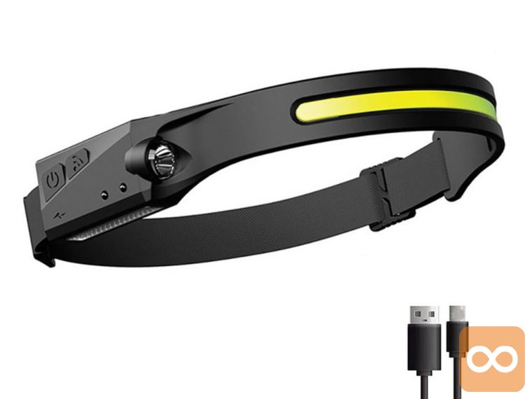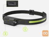 2v1 aku. LED COB naglavna svetilka 350lm USB senzor vklopa