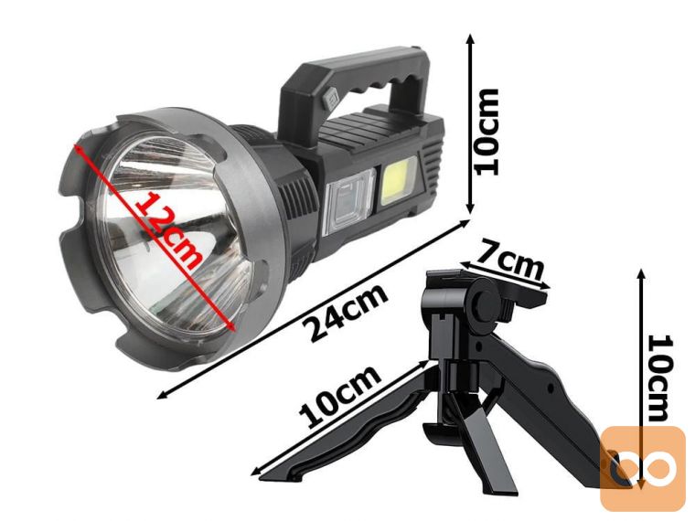 Da bi zagotovili stabilno in prilagodljivo uporabo, je ta svetilka opremljena tudi s stativom. Stativ omogoča, da svetilko postavite na ravno površino ali jo pritrdite na stojalo, kar vam omogoča, da osvetlite prostor brez potrebe po držanju svetilke v roki. To je še posebej koristno, če morate opraviti dolgotrajne naloge ali če potrebujete prosti roki med uporabo svetilke.