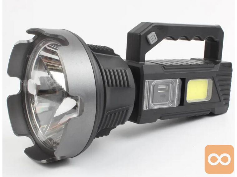 Svetilka ima tudi COB LED ploščo na strani naprave, ki ima možnost osvetlitve bele in rdeče opozorilne lučke.