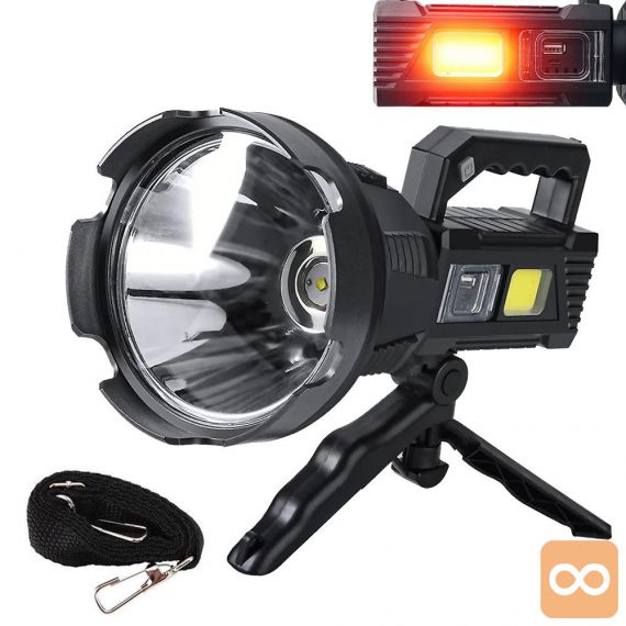 Ponosno predstavljamo Aku. polnilno 100W LED CREE XHP50 COB reflektorsko ročno svetilko, ki je opremljena s funkcijo USB powerbank in stativom. Ta izjemna svetilka je zasnovana za zagotavljanje izjemne svetlobe in praktičnosti v različnih situacijah.