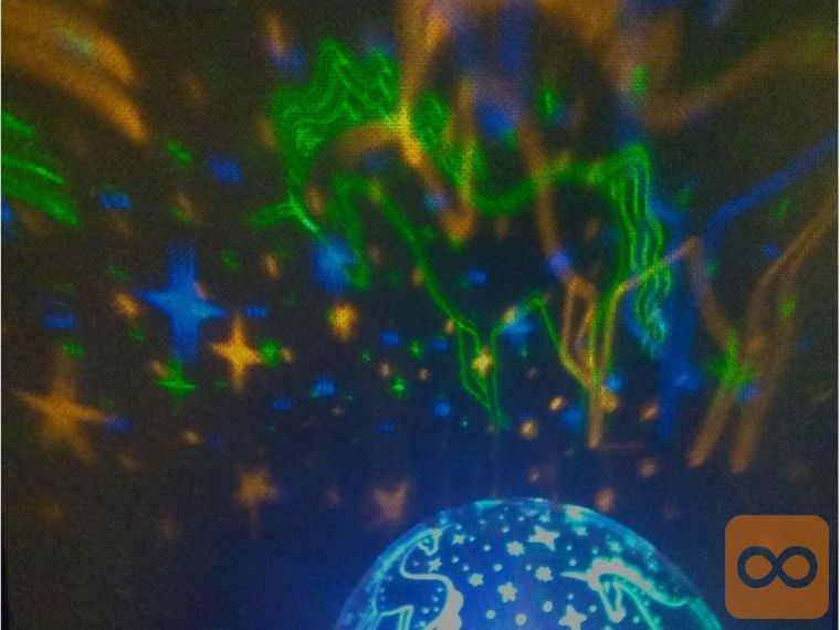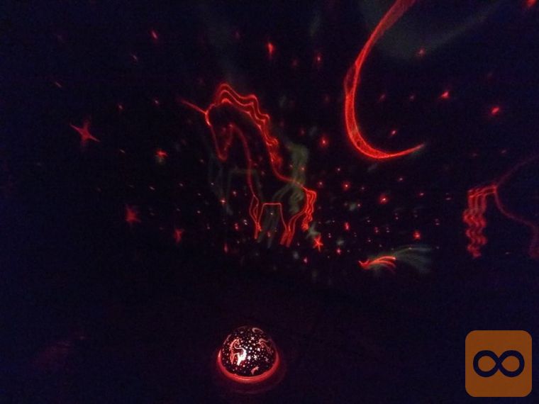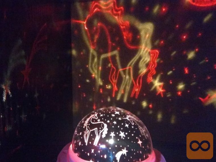 Svetilka ustvarja neverjetne vzorce na stenah, oknih (samorog, zvezde, luna).