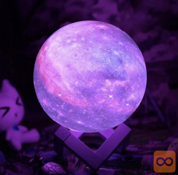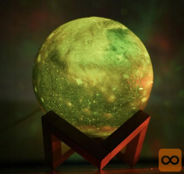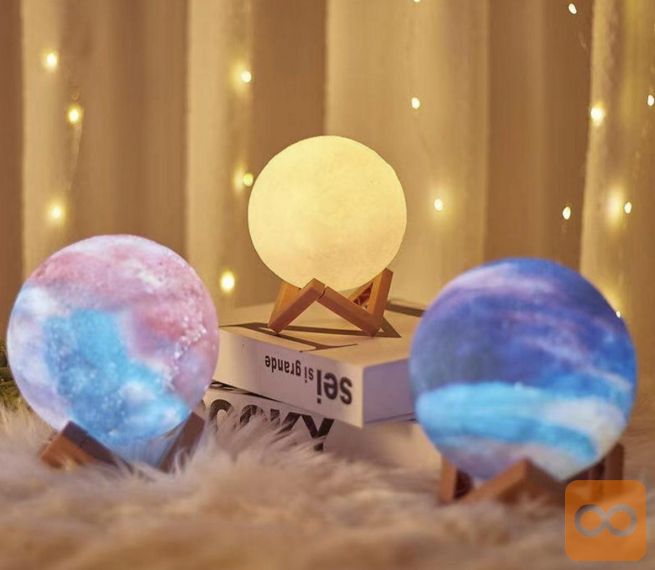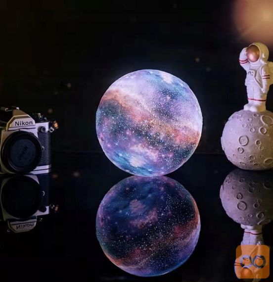 - IMITACIJA LUNE – svetilka je bila izdelana z uporabo inovativne tehnologije 3D tiskanja , zahvaljujoč kateri odlično posnema naš satelit. Ima grobo strukturo in vsak krater na njem ustreza pravemu . Če sanjate, da bi zaspali pod svetlo, sijočo luno, vam ta svetilka daje takšno priložnost.
