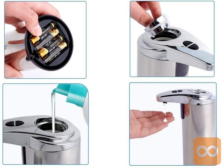 Za uporabo dozirnika dlje časa držite gumb za vklop , če ga želite izklopiti, storite enako z gumbom za izklop. Napravo napajajo štiri AAA baterije. Dozirnik se lahko uporablja tudi za razkužila za roke . Sistem brez dotika, ki je dandanes izjemno uporaben, da se izognemo čim večji količini bakterij.