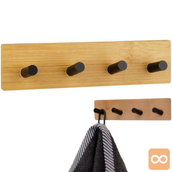 Elegantno obešalo za brisače za vaš dom s trdno kovinsko strukturo v barvi bambusa z mat črnimi kavlji! Popoln za kopalnico in kuhinjo za obešanje brisač ter pripomočkov za čiščenje in pomivanje, kot so krtače ali gobe. Uporablja se lahko tudi v veži, hodniku ali garaži kot majhen organizator za obešanje majhnih, lahkih stvari, kot so kape, ključi ali manjše orodje. Vendar ne preobremenite obešalnika.