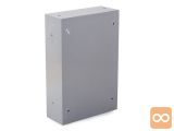 Ima okence za kartico z osebnimi podatki. V kompletu so zatiči, vijaki, distančniki za montažo škatle ter set dveh ključev.