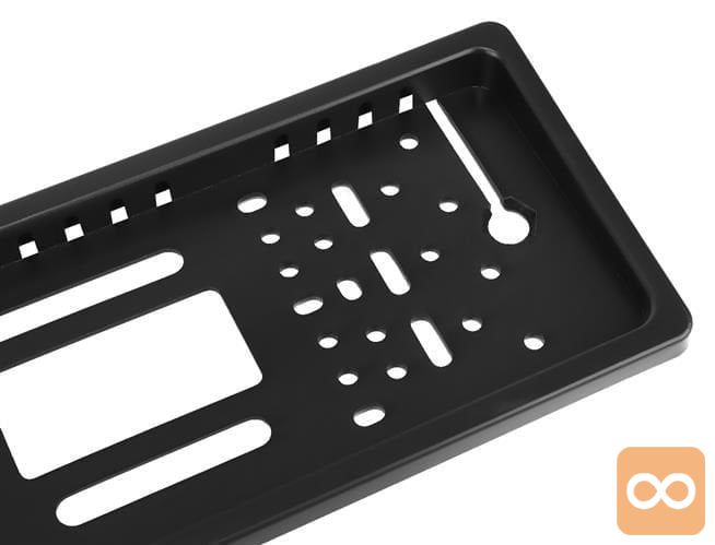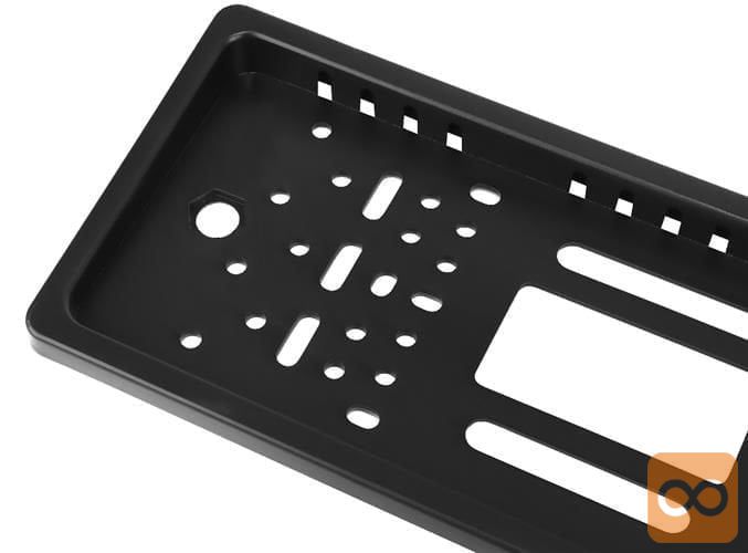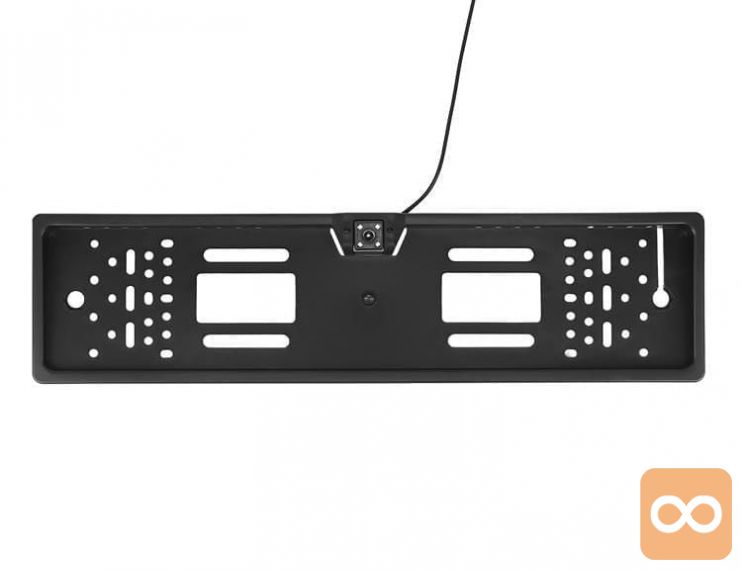 Dovolj je zamenjati tradicionalni okvir z NAŠIM MODELOM, na katerega je pritrjena spletna kamera. V kompletu je komplet kablov potrebnih za namestitev. Komplet ne vključuje monitorja – z VIDEO kablom lahko povežete poljuben zaslon ali monitor. Nad sliko kamere so pomožne črte, ki bodo močno olajšale parkiranje avtomobila.
