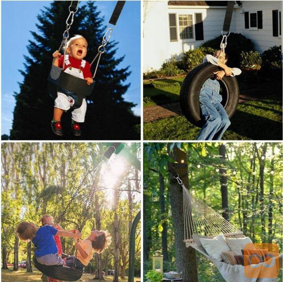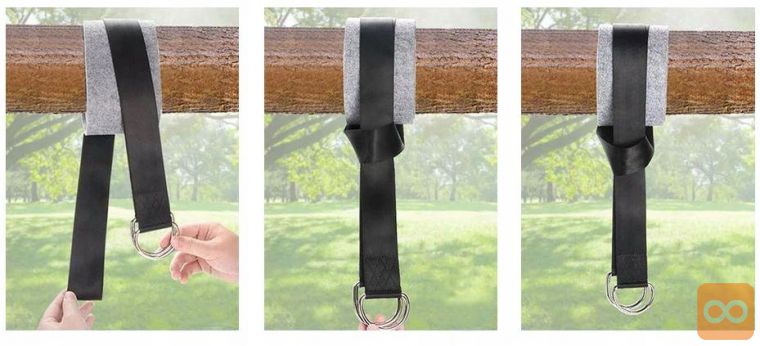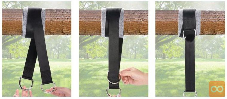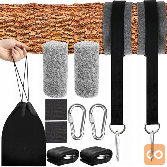 ENOSTAVNA MONTAŽA IN VZDRŽLJIVOST – montažni komplet za visečo mrežo ali gugalnico omogoča hitro obešanje, brez vrtanja ali poškodovanja drevesa ter brez potrebe po dodatnem orodju. Zahvaljujoč visoki kakovosti vseh komponent je ta komplet tudi zelo vzdržljiv in varen za uporabo.