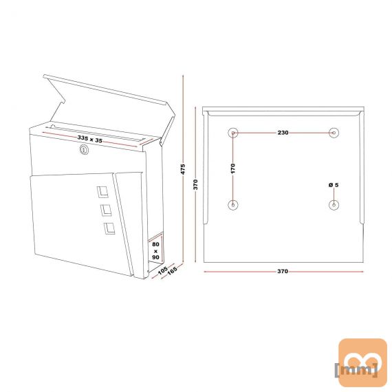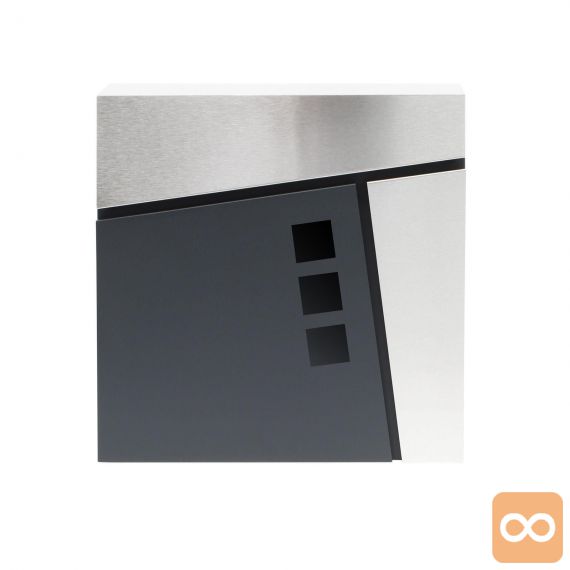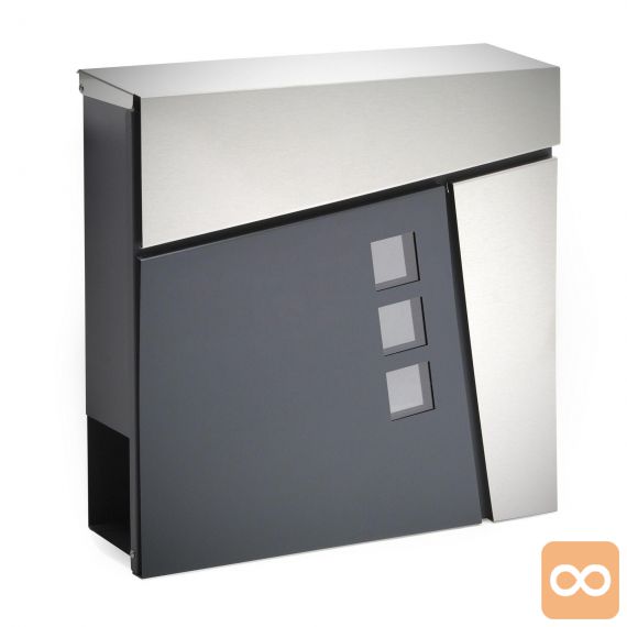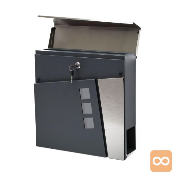 Dizajnerski nabiralnik iz pocinkanega antracit jekla s inox pokrovom.