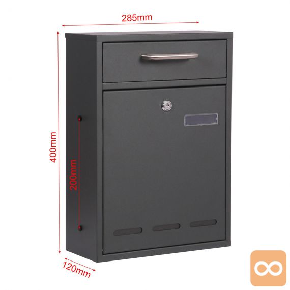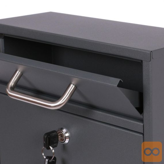 Ta nabiralnik v antracitni barvi preprostega, elegantnega dizajna je primeren tako za notranjo kot zunanjo uporabo in ponuja veliko prostora za pisma, revije in večje poštne pošiljke.