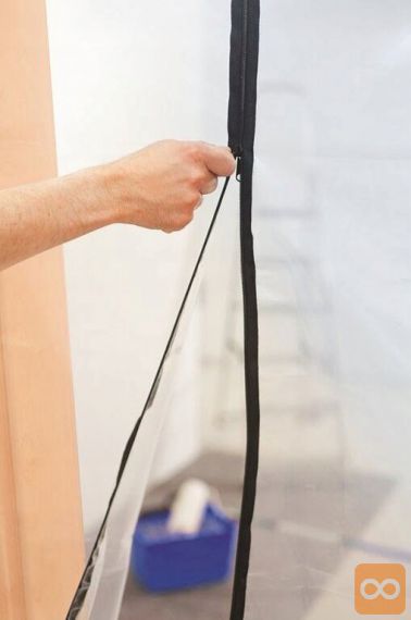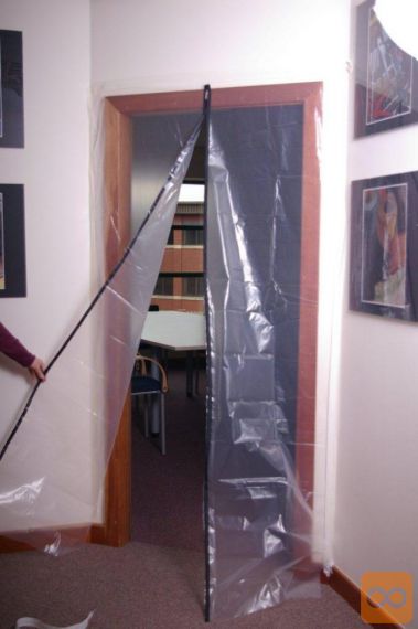 Protiprašna vrata s priročnim prehodom na zadrgo. Popolna rešitev za prenove. Prah, ki nastane med delom, se zadržuje v prenovljenem prostoru. Univerzalna velikost in trak omogočata hitro tesnjenje vrat. Trdna zadrga olajša komunikacijo.