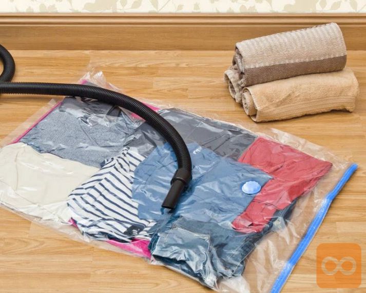 • PRIHRANEK PROSTORA – samo pospravite stvari v torbo. Vakuumska vrečka po izsesavanju zraka z navadnim sesalnikom zmanjša svojo prostornino do 80 % . Omogoča vam, da prihranite veliko prostora.