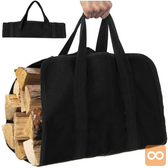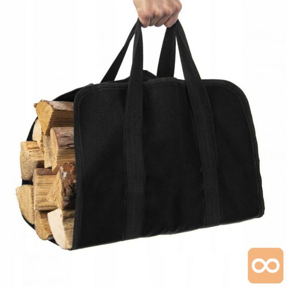 Črna lesena torba je izdelana iz trpežnega materiala Oxford 600D. Tkanina je izdelana iz poliestrskih vlaken in jo odlikuje zelo visoka trdnost in odpornost proti obrabi, raztezanju ali trganju. Material je vodoodporen na obeh straneh , tako da lahko enostavno prenašate tudi mokre kose lesa brez nevarnosti poškodb.Izdelek ima odprto strukturo, ki omogoča prenašanje velike količine lesa katere koli velikosti. Vreča je sestavljena iz dveh ročajev, kar omogoča udoben transport lesa. Lahko jih primete v roke ali si jih nadenete na rame. Za večjo stabilnost pri premikanju več materiala lahko nosilec pritrdite z Velcro ; les se ne bo premikal, udobje prenašanja pa se bo zagotovo povečalo.