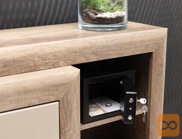 Solidno delovanje zagotavlja, da nihče razen nas ne bo imel dostopa do vsebine. Sef je trpežen in odporen na poškodbe ter razmeroma težak. Posledično se zmanjša tveganje, da bi celoten predpomnilnik ukradli in ga neopaženo odnesli zunaj zgradbe ali prostora, v katerem se nahaja. Zapiranje vrat z debelimi zapahi učinkovito izpolnjuje dodatno varnostno vlogo in preprečuje vlom. Varno omogoča shranjevanje vseh pomembnih stvari, vklj. denarja, nakita, dokumentov ali manjše elektronske opreme, pa tudi medijev za shranjevanje občutljivih podatkov. Dimenzije prostora v sefu omogočajo shranjevanje listov do velikosti A5 in vseh vrst manjših predmetov večjih vrednosti. Dno sefa lahko prekrijete s priloženo podlogo iz materiala . Nakit ali druge dragocenosti bo zaščitil pred naključnimi poškodbami ali praskami. Sef se odpira s ključem, v kompletu je priložen komplet 3. Tako boste imeli en ključ za rezervo, ostale pa za uporabo dveh oseb.