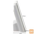 - SPECIFIKACIJA – barva: črno-bela; material: plastika / kovina; zaslon: LCD; temperaturno območje: 0 – 50 stopinj Celzija; območje vlažnosti 20-90%; prikaz temperature v lestvici °C ali °F; dva formata na izbiro – 12 in 24-urni; funkcija dremeža: 8 minut; funkcija prikaza minimalne in maksimalne temperature in vlažnosti: da; napajanje: baterija: 1 x AA baterija (ni priložena); osvetlitev ozadja: da; zvočni signal: da; dimenzije: 9,5 x 9,5 x 4 cm; teža: 0,10 kg