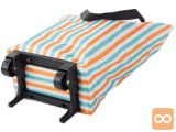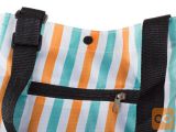 Na sprednji strani vozička je majhen žepek dimenzij 18cm x 18cm , kamor lahko pospravite denarnico, telefon ali ključe. Celota se zapira z zapahom. Torba je izdelana iz močnega materiala odpornega na vlago in dež.