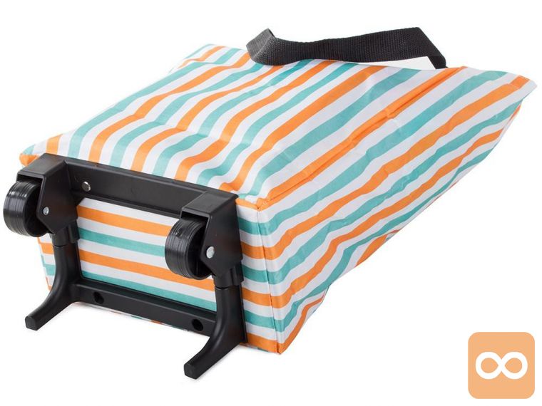 Konstrukcija je stabilna , podstavek s kolesi in trdnimi oporami bo poskrbel za udobno gibanje po pločniku in dovozih. Zahvaljujoč nastavljivim ušesom lahko ustrezno višino torbe prilagodite svoji višini. Največja višina torbe z ročaji je 82 cm.