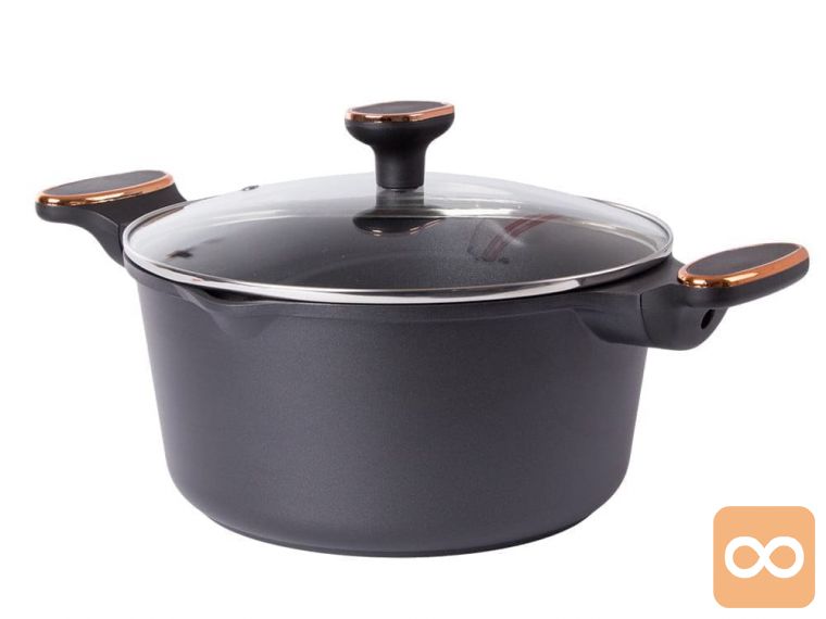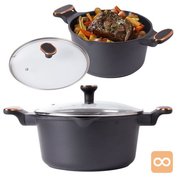 Posoda s pokrovom iz tlačno litega aluminija s premazom proti prijemanju. Je popolna posoda za vsako kuhinjo in je idealna za cvrtje, kuhanje in dušenje hrane .