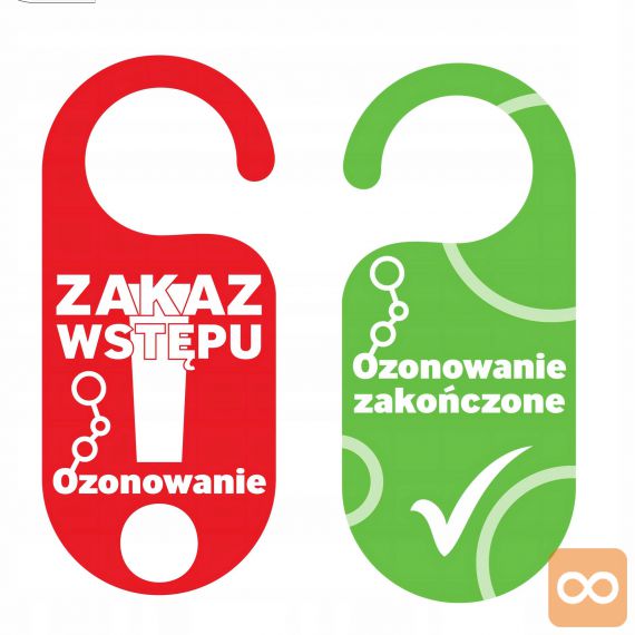 - Dvostranski obešalnik za vrata, ki obvešča o ozoniranju