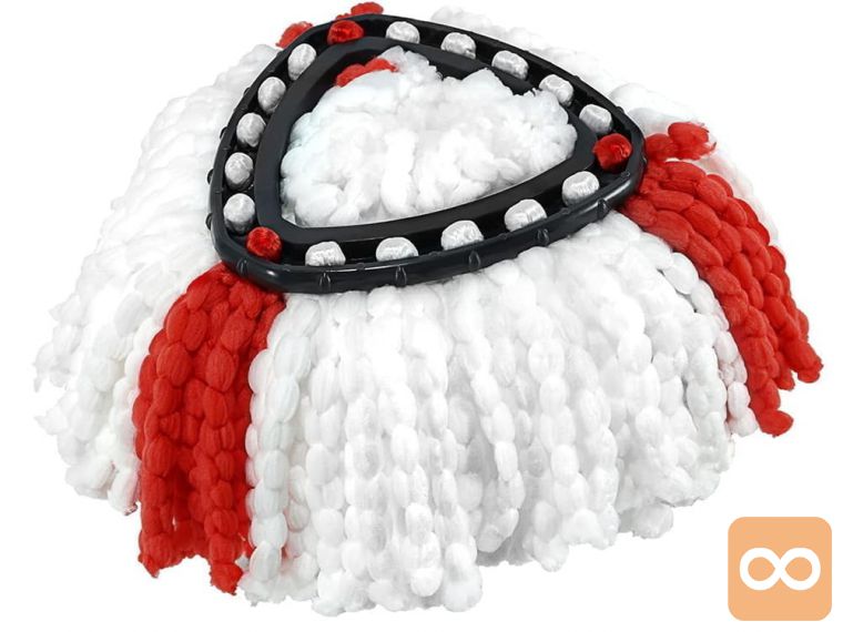Čista tla brez napora? Z novo krpo je to mogoče! Vložek ima dve vrsti bombažnih mikrovlaken: bela čistijo močno umazanijo in zasušene madeže, rdeči del pa odstrani delce in umazanijo s tal. Prednost vložka je, da ga lahko perete v pralnem stroju do 60 °C.