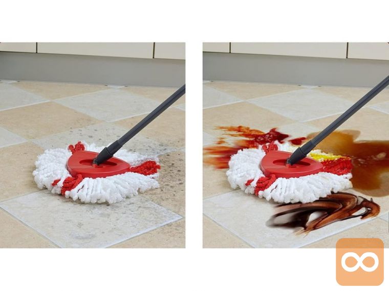 - UNIVERZALNO – popolnoma se spopada s katero koli vrsto podlage, ploščami, linolejem, ploščicami, lesom, kamnitimi tlemi – in kar je najpomembnejše? Pri uporabi vam ni treba skrbeti za madeže!
