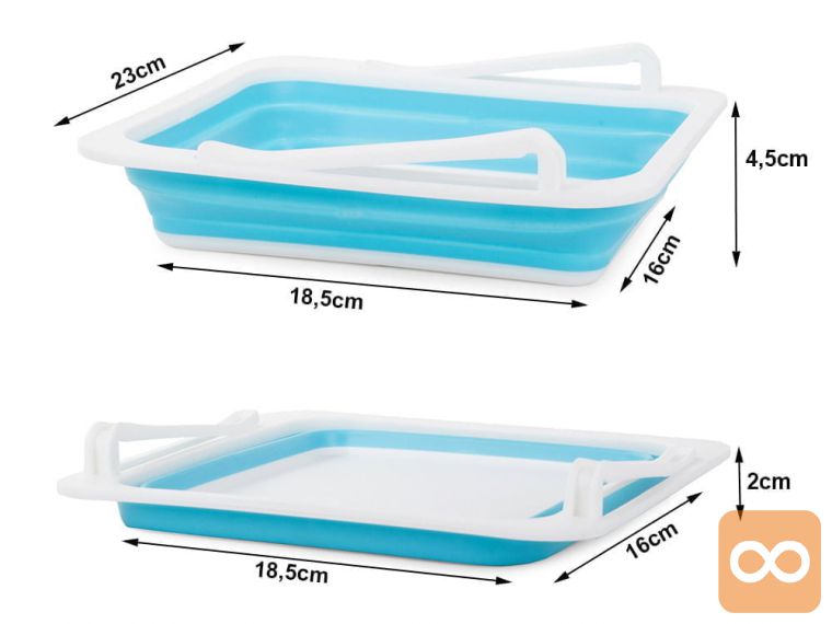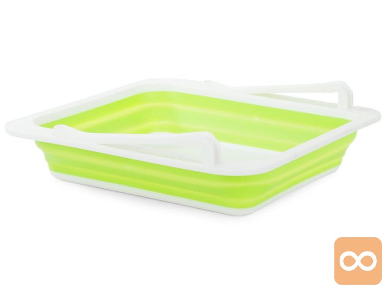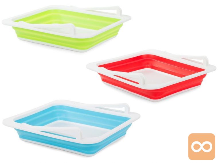 Pomivalni stroj na varnem. Izdelana v delu silikona, zložljiva tako, da zavleče čim manj prostora, ko ga ne uporabljate.