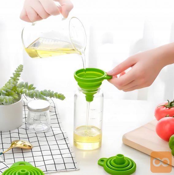 • UNIVERZALNOST V UPORABI – silikonski lijak je univerzalen v uporabi. Zelo dobro se bo obnesel v gospodinjstvu – na primer v kuhinji, v kopalnici in v garaži poleg avtomobila.