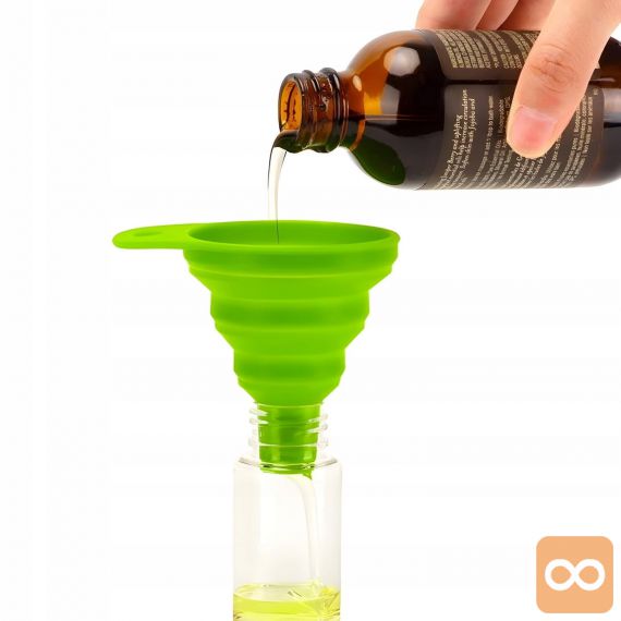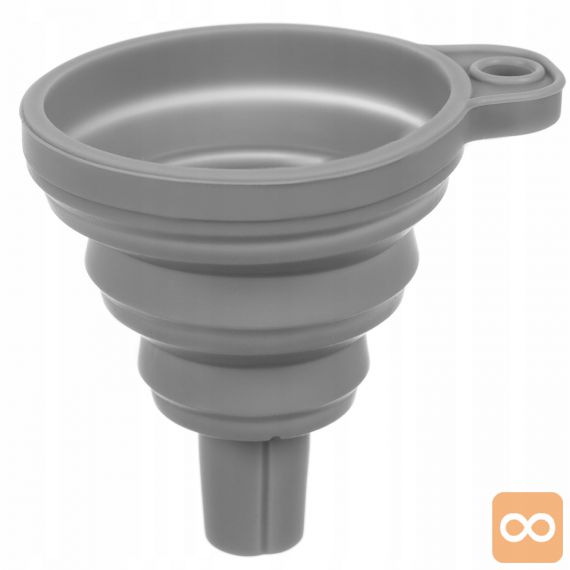 • HARMONIKA + MAJHNA IN PRIROČNA – pozabite na razlitje pri dolivanju vode, tekočine, goriva itd. Lijak se zloži kot harmonika, zložen pa zavzame popolnoma ravno obliko, zato zavzame zelo malo prostora. Shranite ga lahko v predal za rokavice v avtu ali v predal.