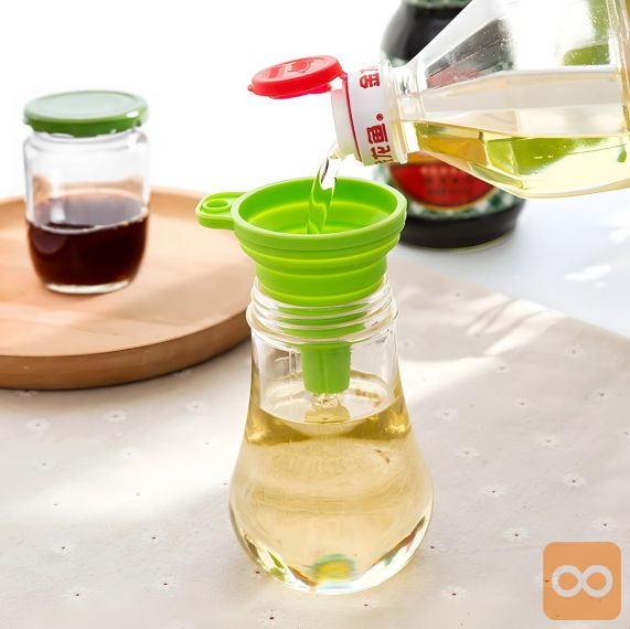 Priročen in praktičen, okrogel, silikonski lijak s premerom 1 cm. Omogoča enostavno prelivanje in prelivanje živilskih izdelkov iz embalaže v embalažo.