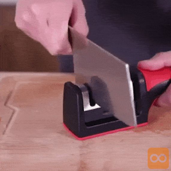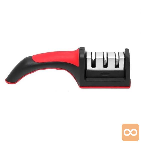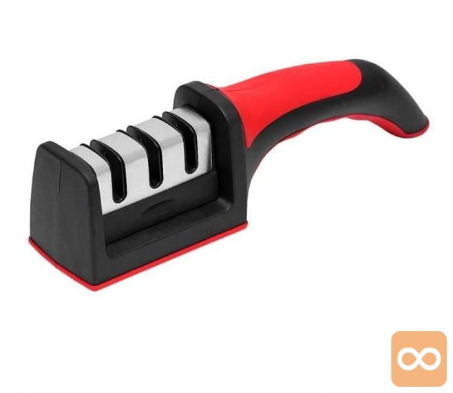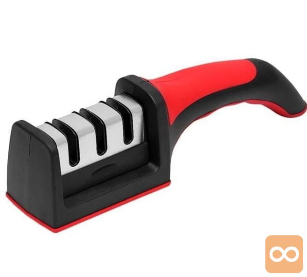 Nič več dolgočasnih nožev v kuhinji, ki zamašijo kuhinjski predal in so sploh neuporabni. Tristopenjski brusilec nožev je rešitev, s katero se boste enkrat za vselej znebili problema neostrih nožev v vsaki kuhinji . Ročni brusilec nožev je enostaven za uporabo in zelo hitro in učinkovito izostri katero koli vrsto rezila. Brusilnik nožev 3v1 je kompakten pripomoček, ki ga lahko preprosto skrijete v kuhinjsko omarico ali predal, ko ga ne uporabljate – zavzame zelo malo prostora, po funkcionalnosti pa premaga številne zajetne in ogromne konkurenčne brusilnike.