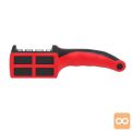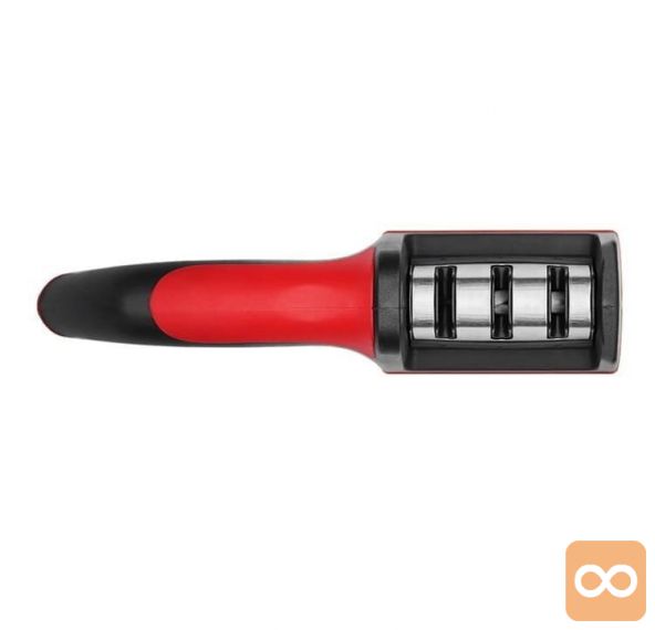 - UDOBEN ROČAJ – zahvaljujoč ergonomskemu ročaju lahko brusilec enostavno držite med brušenjem nožev. Brusilec varno leži v roki in ne drsi iz roke, kar olajša delo in zagotavlja varnost pri brušenju nožev.