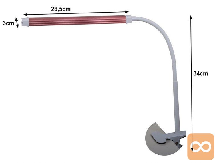 Moderna namizna svetilka, opremljena s 24 svetlečimi LED diodami z dvema načinoma osvetlitve. Odličen je za domače naloge, branje knjig, lepotne tretmaje, delo na prenosnem računalniku, tudi kot nočna lučka.