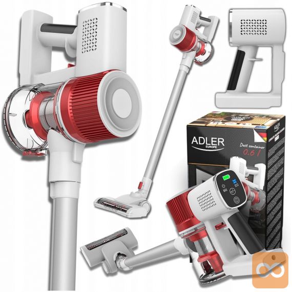 Vertikalni sesalnik ADLER AD 7051 je profesionalna, visoko zmogljiva naprava, idealna za udobno čiščenje številnih prostorov in notranjosti avtomobila. Največja moč 300 W z možnostjo dvostopenjske nastavitve (Max/Eco), ki zagotavlja ustrezno sesalno moč (11,5/7 Kpa) za različne potrebe čiščenja. Baterija zdrži do 18 minut pri najvišjih nastavitvah ali do 30 minut pri varčnem načinu, tako da lahko dokončate čiščenje brez ponovnega polnjenja. Raven hrupa le 70 dB vam omogoča čiščenje, ne da bi motili vaš dom. Krtača z LED osvetlitvijo olajša čiščenje na težko dostopnih mestih in poskrbi za vidljivost v temnih kotih. Jeklena cev zagotavlja vzdržljivost in hkrati lahkotnost, ki olajša manevriranje s sesalnikom. Ciklonski filtrirni sistem učinkovito ločuje umazanijo in prah ter zagotavlja čist zrak, izpihnjen iz sesalnika. Krtača za reže 2 v 1 omogoča temeljito čiščenje tudi na težje dostopnih mestih. Priložen obešalnik za sesalnik zagotavlja enostavno in priročno shranjevanje naprave.