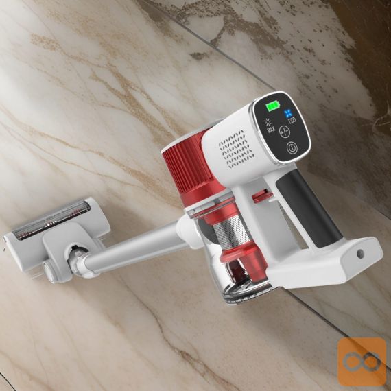 Opremljen je s svetlim LED-svetlobnim trakom, ki zagotavlja popolno vidljivost tudi na temnih mestih, kot so koti in predeli pod pohištvom. Ta sesalnik je izredno lahek in enostaven za uporabo, kar pomeni, da je idealen za hitro dnevno čiščenje ter primeren za vse vrste talnih površin – od trdih tal do preprog. Poleg tega ima zmogljivo 2200mAh baterijo, ki zagotavlja dolgotrajno delovanje na eni polnitvi, s čimer omogoča, da lahko posesate celoten dom brez prekinitve.
