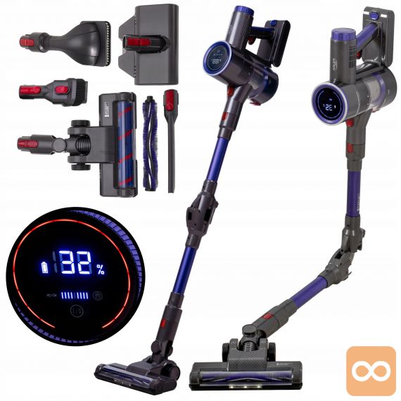 Ta sesalnik ima LED osvetlitev na sesalni glavi, ki osvetljuje tla in temne kotičke, tako da enostavno opazite tudi skrite nečistoče. Zaradi 2v1 funkcionalnosti ga lahko uporabljate kot pokončni sesalnik za tla ali kot ročni sesalnik za čiščenje težje dostopnih mest, kot so pohištvo, stopnice ali avtomobilski sedeži. Kompaktna in lahka zasnova omogoča enostavno upravljanje in shranjevanje, medtem ko se njegova zmogljiva baterija hitro napolni, da je sesalnik vedno pripravljen na uporabo.