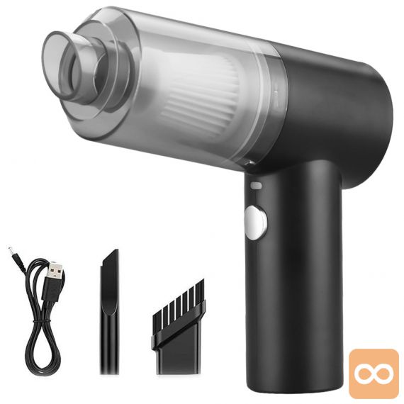 Sesalnik se polni preko USB kabla in ima majhno LED lučko zahvaljujoč kateri lahko vidimo vso umazanijo v našem avtomobilu. V kompletu sta dve šobi za enostavno čiščenje.