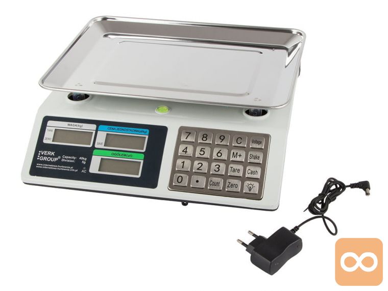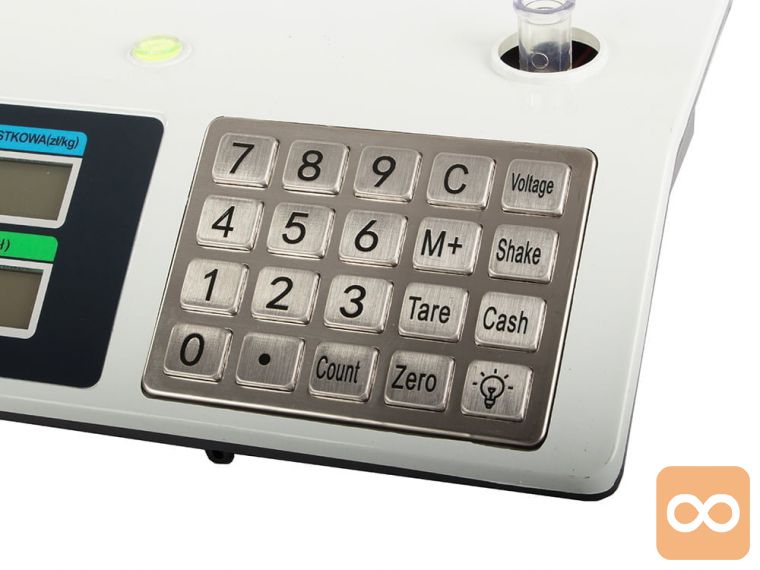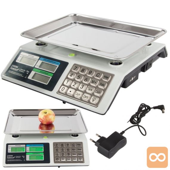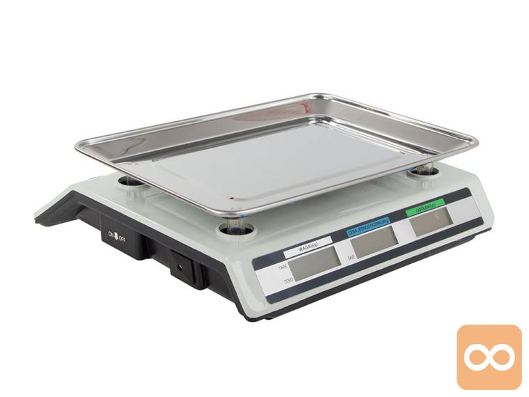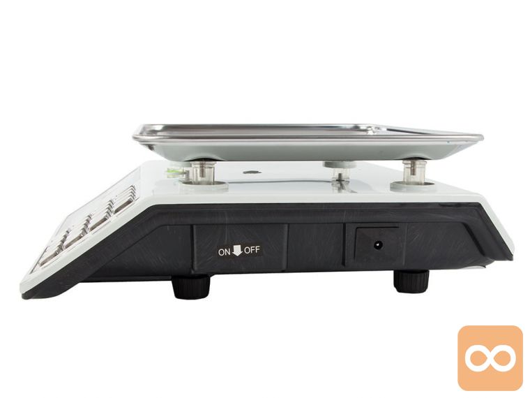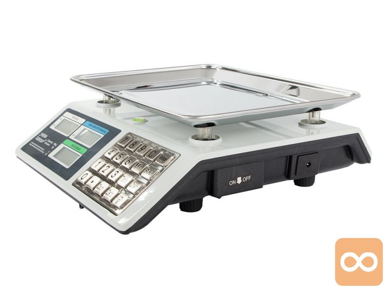 Trgovinska tehtnica je odlična rešitev in odlična izbira za vse, ki delate v maloprodaji in potrebujete natančnost tehtanja. S temi lestvicami je enostavno in preprosto delati, napisi na gumbih so jasno vidni. Tehtnica je zelo natančna, korak tehtanja je le 2 grama. Obstaja funkcija tare. Povzamete lahko več izdelkov z različnimi cenami in različnimi utežmi. Tehtnice delujejo iz omrežja in akumulatorja. Na strani kupca in prodajalca so trije zasloni, na katerih so prikazani vsi podatki o artiklu, ki se tehta: skupna cena, cena, teža.