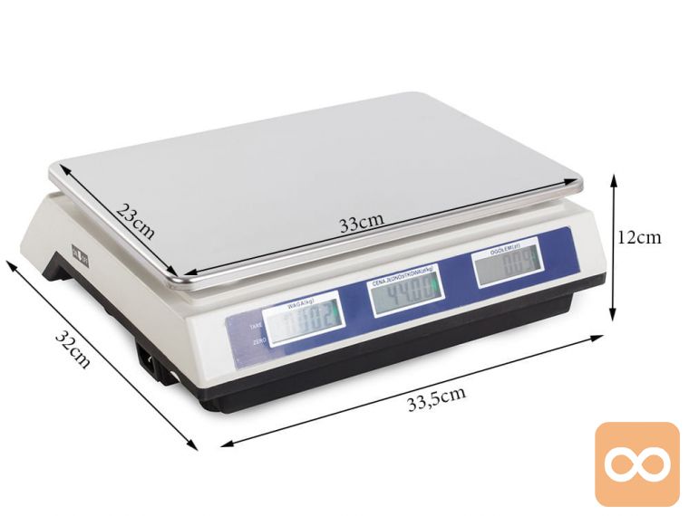 Z velikimi, jasnimi in intuitivnimi funkcijskimi gumbi za upravljanje ravnotežja naredijo tehtnico preprosto in enostavno za uporabo. Na zadnji strani ima tehtnica tudi 3 zaslone. Zaradi teh funkcij je nepogrešljiv instrument v kateri koli trgovini.