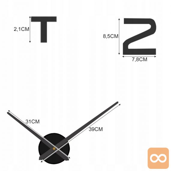 - SPECIFIKACIJA – črna barva; material: pena / plastika / kovina; dolžina rok: 39 + 31 cm; debelina številke: 1cm; višina črk: 2,1 cm; višina števk: 7-8cm; premer: 60-130cm; napajanje: 1 x AA baterija (ni priložena); teža kompleta: 306 g