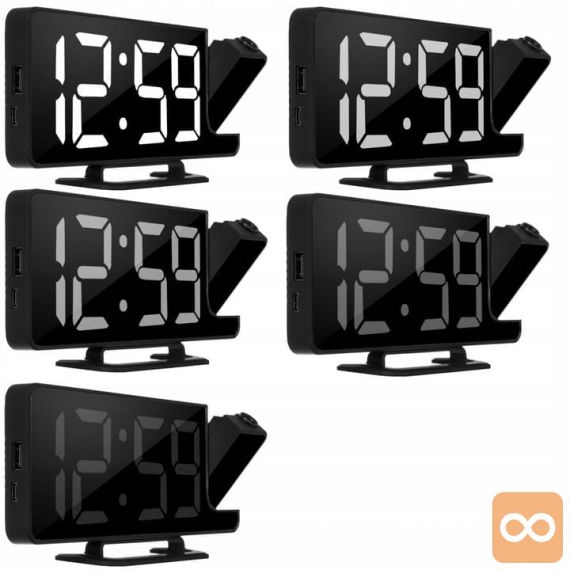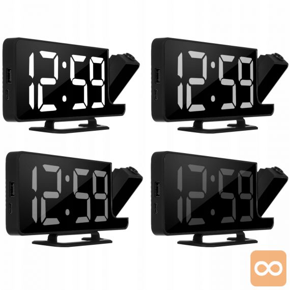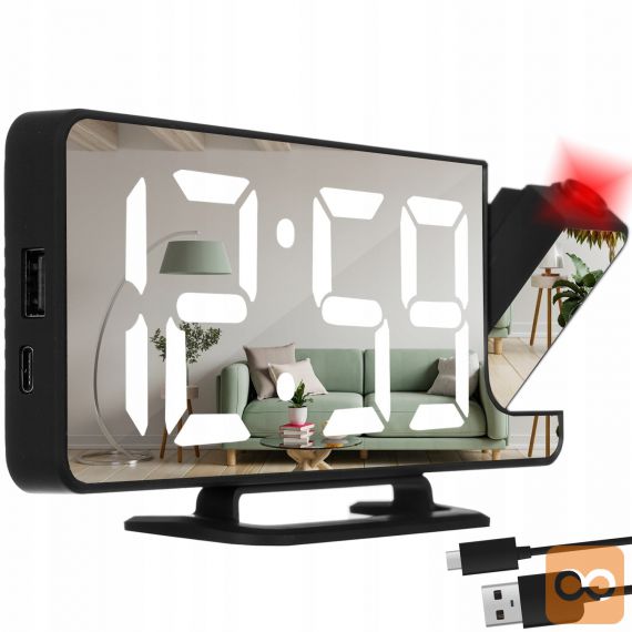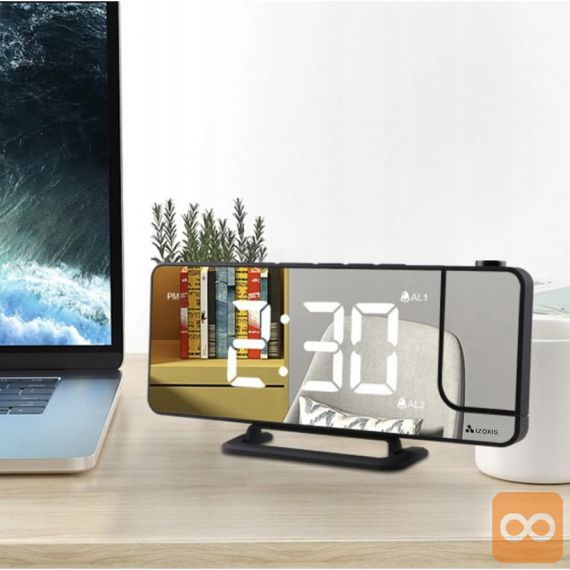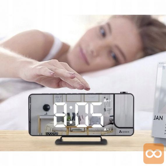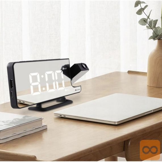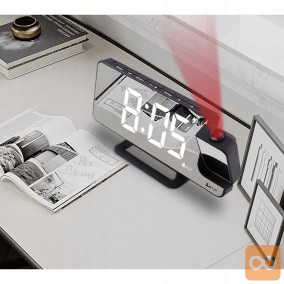 - 4v1 – ura, budilka, ogledalo in projektor ! Vse v eni kompaktni napravi. Budilka je opremljena z zrcalno sprednjo stranjo, na kateri so prikazane informacije, kot je ura. Kompaktne mere in majhna teža vam bodo omogočile, da ga vzamete na potovanje. Odlična bo tudi pri spanju v šotoru, kjer zrcalna sprednja stran omogoča hitro ličenje in pričesko.