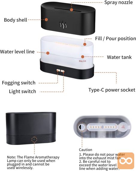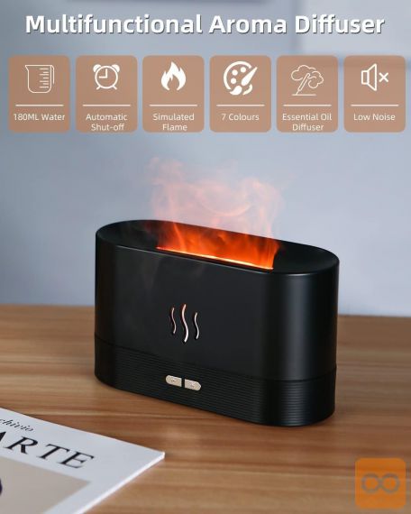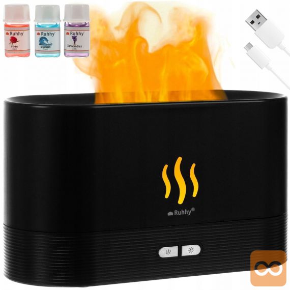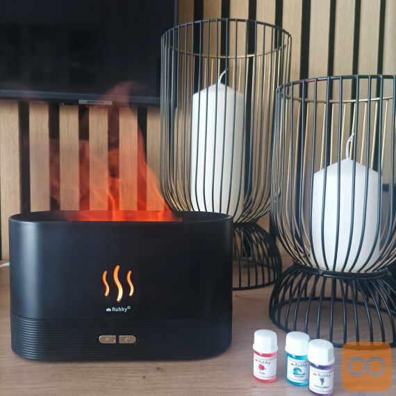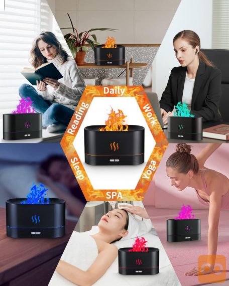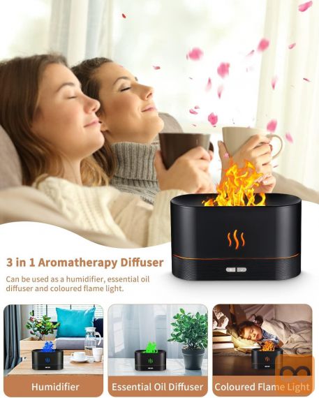 • NAPRAVA 3-v-1 – je izjemno tih in prenosen vlažilec zraka, ki skrbi za primerno vlaženje prostora v stanovanju. Njegov moderen videz se bo podal v vsak interier, vonj, ki se širi iz njega, pa bo vašemu domu dodal pridih elegance. Dodatno ima naprava vgrajeno RGB LED svetilko z efektom ognja in možnostjo aromaterapije.