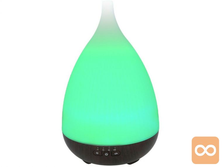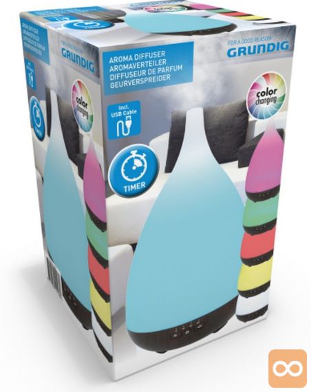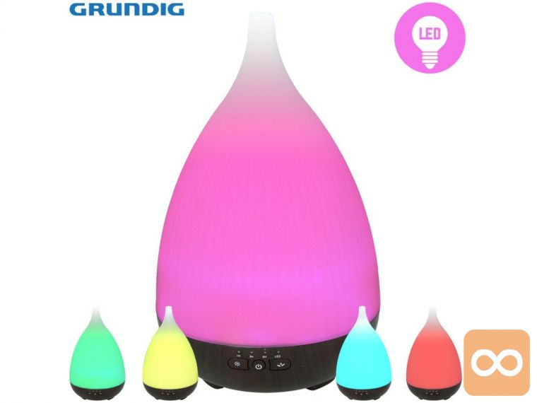 Ta aromatični difuzor iz Grundiga razprši čudovito dišavo in vam nudi tudi ambientalno LED svetlobo, ki spreminja barvo, še posebej primerno za delo s kromoterapijo.