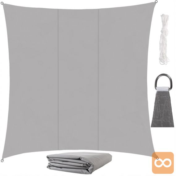 Vodoodporno UV vrtno senčno jadro 3,6×3,6m pravokotno sivo