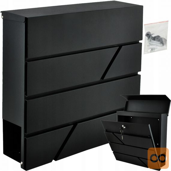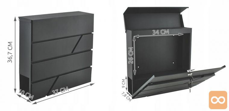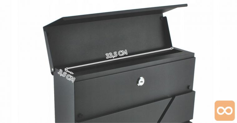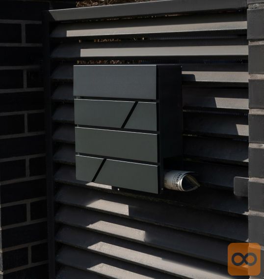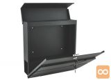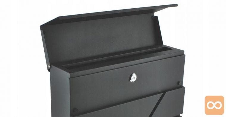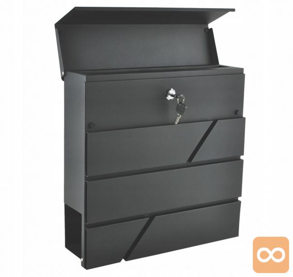Zavihek pokrova sloni na dveh gumijastih blazinicah , kar pomeni, da tudi ob prostem padcu ne povzroča pretiranega hrupa in ne ogroža površine škatle. Enostavno dvigljiva loputa ima posebej profiliran rob, ki olajša njeno odpiranje . Poleg tega povzroči, da voda teče po škatli ali močan dež ne vstopi v zgornjo režo med vrati in škatlo , zato voda ne teče noter. Poleg tega so v zasnovi škatle zračniki , ki prepuščajo zrak za kroženje in samoizparevanje odvečne vlage, ki se naravno nabira in useda na stene zaprtih objektov zunaj.Sprednja odpiralna vrata se zapirajo s ključavnico z zapiralno ročico in se odprejo dovolj na široko, da omogočijo enostaven dostop do notranjosti nabiralnika in tako učinkovito izvlečejo iz njega še več korespondence. Na dnu škatle je luknja za odlaganje časopisov, reklamnih letakov ali letakov .V kompletu sta dva ključa , tako da ni treba dodati dodatnega izvoda, če škatlo uporablja več kot ena oseba. Nabiralnik ima tudi posebne luknje za pritrditev . S pomočjo priloženih vložkov in podložk, ki služijo tudi kot distančniki, je dovolj, da ga privijete na podlago, na katero boste končno namestili.Zaradi gladke površine je škatla enostavna za čiščenje in ne nabira pretirano umazanije v obliki padajočega prahu oz.